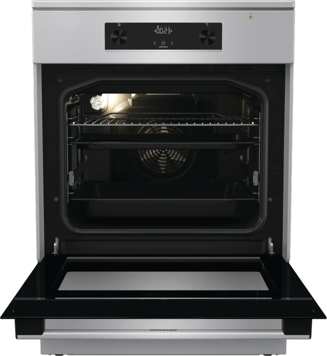 Благодаря функции плавного закрывания и открывания дверцы вы сможете легко и аккуратно закрыть дверцу духового шкафа, даже если у вас заняты руки.