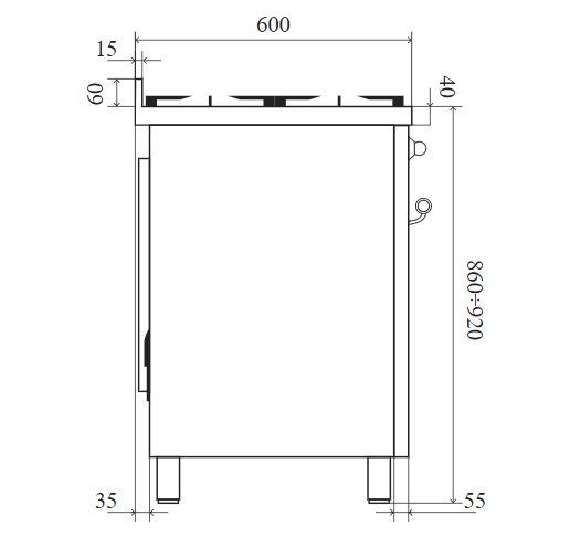 • Тип конфорок: газовые, варочная зона Fry-Top
