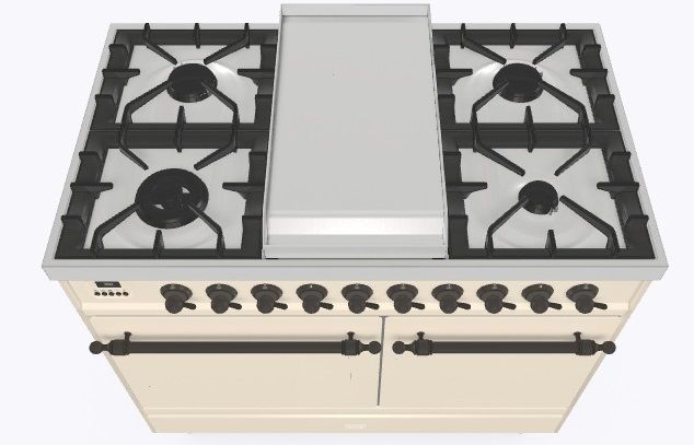 • Тип конфорок: 4 газовые конфорки, Dual конфорка, жарочная поверхность Fry Top