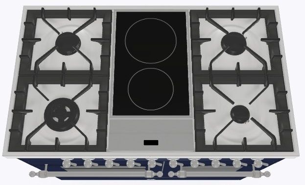 2 индукционные, 4 газовые, 1 Dual конфорка