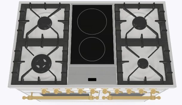 2 индукционные, 4 газовые, 1 Dual конфорка