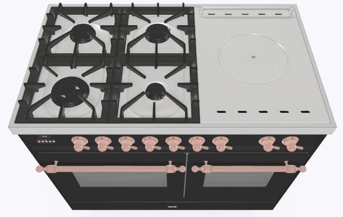 • Тип конфорок: 4 газовые конфорки, WOK конфорка, жарочная поверхность Coup de Feu