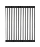 Он может быть использован в качестве подставки для горячей посуды, сушилка для овощей и фруктов или коврик для разморозки продуктов. Благодаря двусторонним силиконовым наконечникам, ролл-мат защищает поверхность и может быть размещен на столешнице, крыле мойки или в специальных направляющих чаши кухонной мойки.