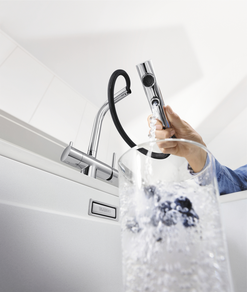 Смеситель с подключением фильтра FONTAS-S II 525207 от Blanco воплощает философию бескомпромиссного качества, инновационного дизайна и функциональности, превращая самое активное место на кухне в продуманный, эргономичный и эстетичный центр для приготовления пищи.